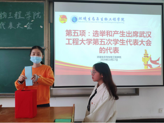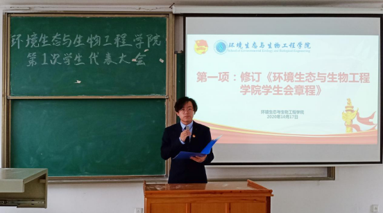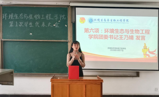 2020年10月17日中午12点,武汉工程大学大红鹰会员登录中心第一次学生代表大会于一教学楼302教室召开。出席本次大会的有学院党委副书记陈朝娟、团委书记王乃婧及112名学生代表,会议由2018级环境科学专业张锡喆同学主持。