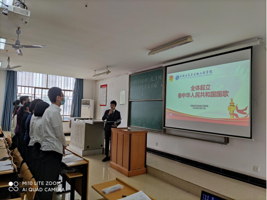 大会在庄严的国歌声中拉开序幕,全体师生起立,奏唱中华人民共和国国歌。