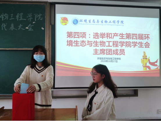 大会第四项选举产生了学院第四届学生会主席团成员,分别为2018生物技术专业黄俊尧、2018级环境科学罗思晗、2018级食品科学与工程专业李浩楠。大会第五项选举产生了6名学生代表参加学校第五次学生代表大会。