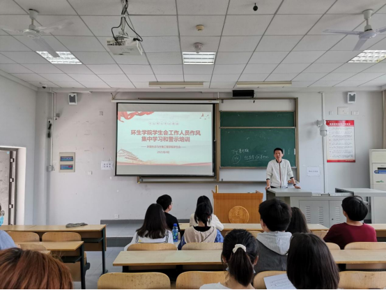 会上以山西水利职业技术学院的案例为警示教育,组织学生集中学习了《关于学联学生会工作人员改进作风服务同学的若干规定》。