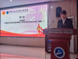 在庄严雄伟的国歌中,正式会议拉开序幕。学院团委书记王乃婧致会议开场词,她对学院第二次学生代表大会的召开表示热烈的祝贺,指出学院建设不仅仅在于老师,大学生也肩负着为社会、学校、学院做贡献的责任,希望同学们能够为学院发展积极建言献策和作出自己的贡献。