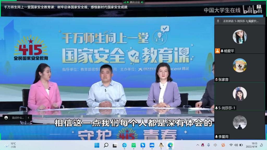 学院以集中和分散、线上和线下的形式,组织学生错峰观看学习以“千万师生同上一堂国家安全教育课”为主题的公开课、收看“国家安全大宣讲”决赛现场讲演比赛活动、线上参观全国教育云基地等。