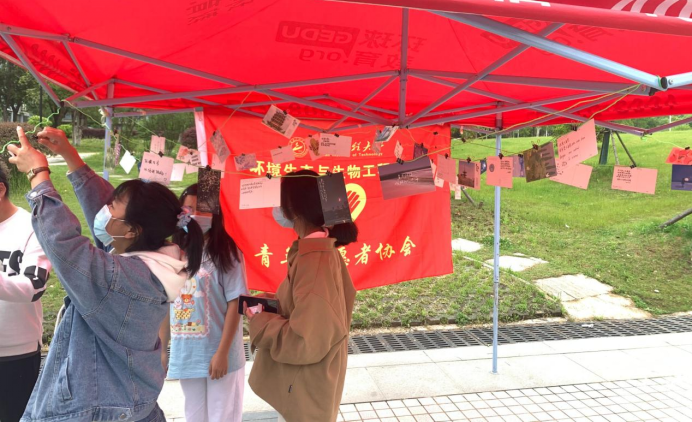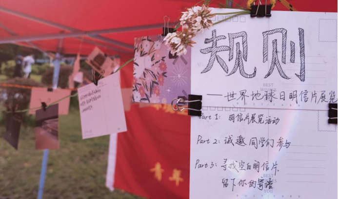 2022年4月20日-5月2日期间,我院青年志愿者协会在学校中快广场开展“心系地球,片语传情”主题活动。全校同学在精美明信片上写下了对地球母亲的热爱与赞美,风趣横生的绘画与饱含真情的文字流露出同学们对大自然的敬重与关怀。通过本次活动,积极培养全校同学爱护生态、爱护环境、爱护地球的意识,让绿色发展理念在校园内蔚然成风。