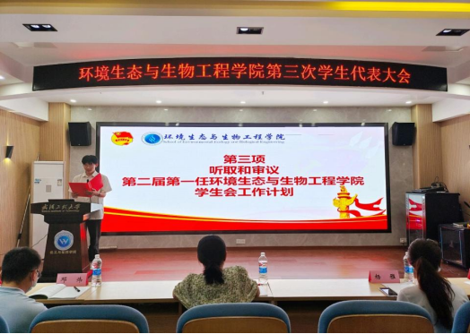 学院第二届第一任主席团成员蒙进杰向全体学生代表汇报工作计划,并承诺将在党组织的领导和团组织的指导和帮助下,团结全体同学,贯彻党的教育方针,以饱满的热情,在正当好的年纪,发挥最大的潜能,让青春在党和人民最需要的地方绽放绚丽之花。