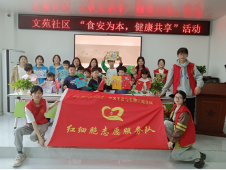 开展实干活动,践行奉献友爱之心。“红细胞”志愿服务队走进洪山区关山街南望社区、江夏区纸坊街文苑社区开展“食安为本,健康共享”志愿服务活动。志愿者结合所学专业,向2个社区的居民详细科普了食品添加剂的正确概念与健康用法,分发了自制的食品安全科普宣传单,加强了大家的食品安全意识,提升了他们维护自身健康的能力与水平。“红细胞”党员先锋队组织入党积极分子到实验室开展“学雷锋,树新风”志愿服务活动,大家将雷锋精神带进实验室,捡拾地上垃圾,清扫卫生死角,志愿者们忙碌的身影筑成了一道靓丽的风景线。