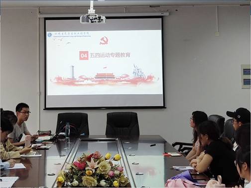 与此同时,全体党员学习了习近平总书记在中共中央政治局第十四次集体会议集体学习讲话精神。为纪念五四运动,发扬五四精神,全体人员共同观看了五四运动纪录片《古城发出怒吼五四反帝爱国运动》。随后,支部书记王乃婧就五四运动的内涵和影响作了进一步阐述,与在场同志们分享了五四运动对自己的触动,并提醒大家作为当代中国青年,莫忘以爱国、进步、民主、科学为核心的五四精神,要传承五四精神,为实现中华民族伟大复兴的中国梦而奋斗。