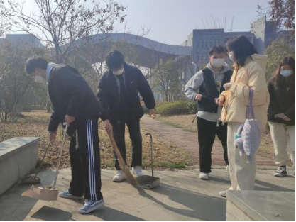 一早,实践团的同学们带着扫帚和簸箕等工具,针对四号教学楼前及其周边区域进行清洁打扫,认真清理了地面、楼道、草坪、绿化带等处的残存垃圾。活动过程中,他们积极劳动、分工协作,相互帮助,配合默契,体现出了环生学子的蓬勃朝气和对生活的积极热爱。