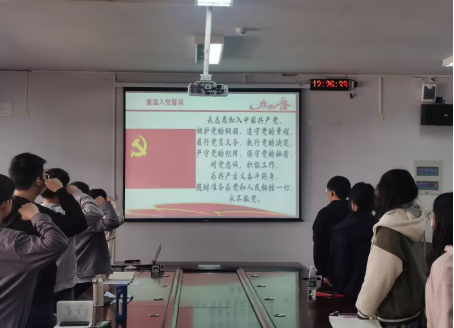 活动最后,在邓龙芝同学的带领下,全体党员重温入党誓词,对着党旗庄严宣誓。
