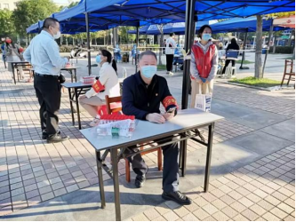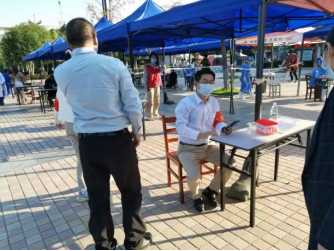 “红细胞”志愿者们在核酸检测点,迅速投入工作,拉警戒线、摆放桌椅,同医护人员摆放好核酸检测所需用品,等待前来做核检师生。并负责维护秩序,劝导师生佩戴好口罩,按要求出示健康码、行程卡,保持1米安全距离。