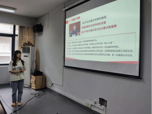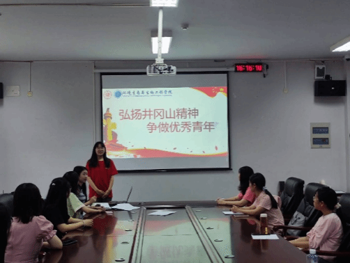 紧接着,2020级食品科学与工程专业学生党员谢佳佳以“弘扬井冈山精神,争做优秀青年。”为主题,从井冈山革命历史、英雄人物简介以及历史意义这三个方面向各位党员同志讲解了井冈山革命精神,号召大家做新时代好青年。