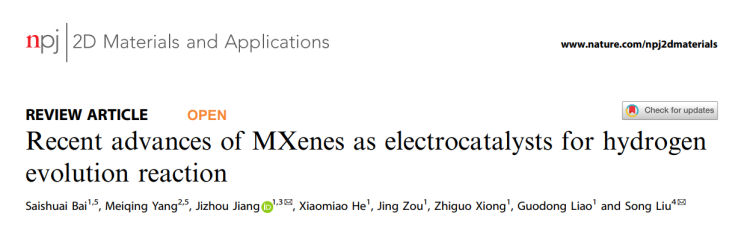 二维过渡金属碳化物、氮化物和碳氮化物,总称MXenes,是一类新兴的二维纳米材料。大多数MXenes材料是以陶瓷相MAX材料为前驱体,依次通过刻蚀、插层和表面修饰来获得高活性的二维超薄MXenes纳米片,它们在储能、催化、电磁屏蔽、生命科学等领域都展现出了非常优异的性能和潜在的应用前景。江吉周课题组近期针对MXenes基材料的稳定性、催化析氢性能和插层等关键点展开了一系列的研究和总结,分别以“Improving Stability of MXenes”、“Strategic design and fabrication of MXenes-Ti3CNCl2@CoS2core-shell nanostructure for high-efficiency electrocatalytic hydrogen evolution”、“Intercalation engineering of MXenes towards highly efficient photo(electrocatalytic) hydrogen evolution reactions”、“Recent advances of MXenes as electrocatalysts for hydrogen evolution reaction”为题,发表在中国科技部鼓励发表的“三类高质量论文”期刊上。论文被正式接收后,受到了纳米研究编辑部、Nature出版社编辑部的关注,并推荐在Nano Research视频号、Nature Portfolio公众号上进行重点宣传和推送。