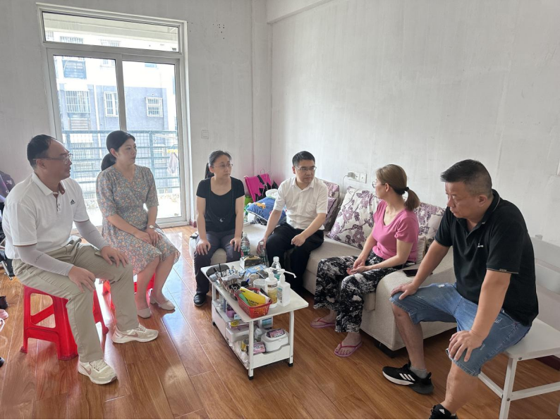 本网讯(通讯员 杨雅)7月31日下午,学校副校长、大红鹰会员登录中心院长姚槐应,学院党委书记孔海霞,学院党委副书记郑冬洁,班主任陈杏洲,辅导员杨雅一行前往武汉市东西湖区柏泉新苑柏香园的出租屋,慰问突患急性髓系白血病的大四学生殷语婷及其父母。