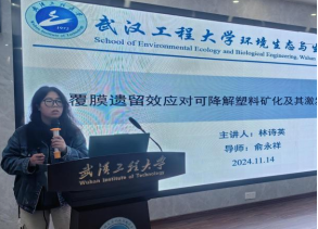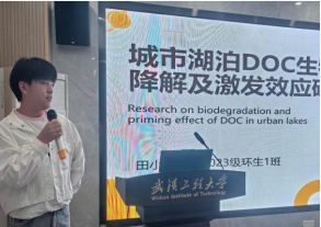 在学术交流环节,四位研究生代表分别以《电容去离子的应用》(王凌霄)、《CiteSpace:文献分析及可视化》(秦首城)、《覆膜遗留效应对可降解塑料矿化及其激发效应的影响》(林诗英)、《武汉市湖泊DOC生物降解性及水草的激发效应》(田小康)为题,就自己的研究方向、研究成果及学术心得进行了分享。他们的报告内容充实、观点新颖、逻辑缜密,赢得了在场师生的阵阵掌声。