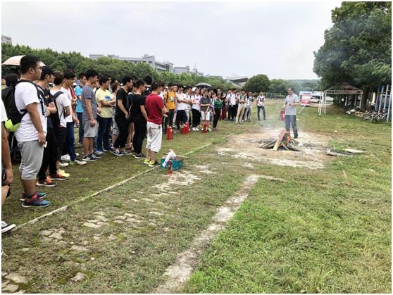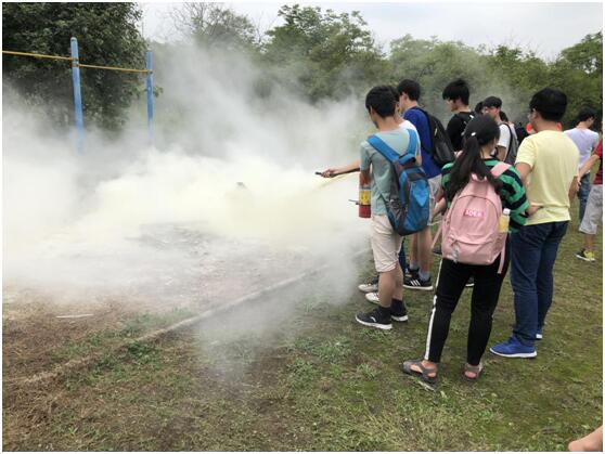 为了提高学生的安全意识及实际操作水平,周老师亲自给大家做了“一对一”的专业示范,并邀请同学们现场动手进行操作,指导学生如何使用灭火器对火险进行有效处置和自救。通过现场演练感受,同学们对如何打开灭火器、如何正确的使用灭火器有了深刻认识。