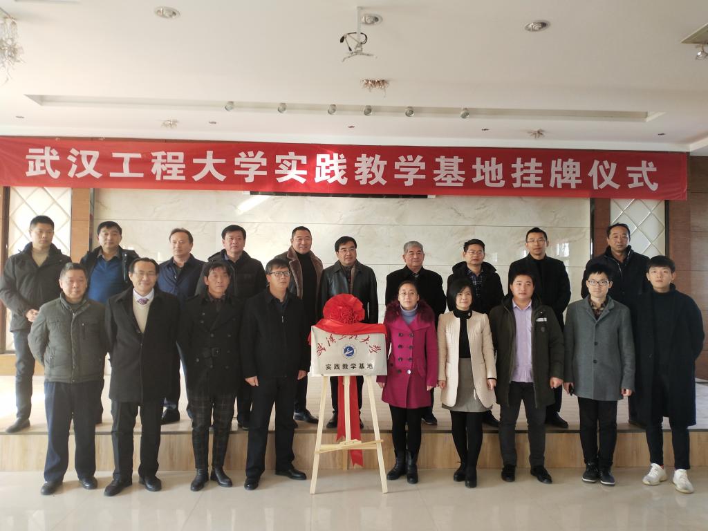孔海霞与黄平在张润昊的见证下签订实践教学基地协议并进行揭牌仪式,会后,与会人员合影留念。