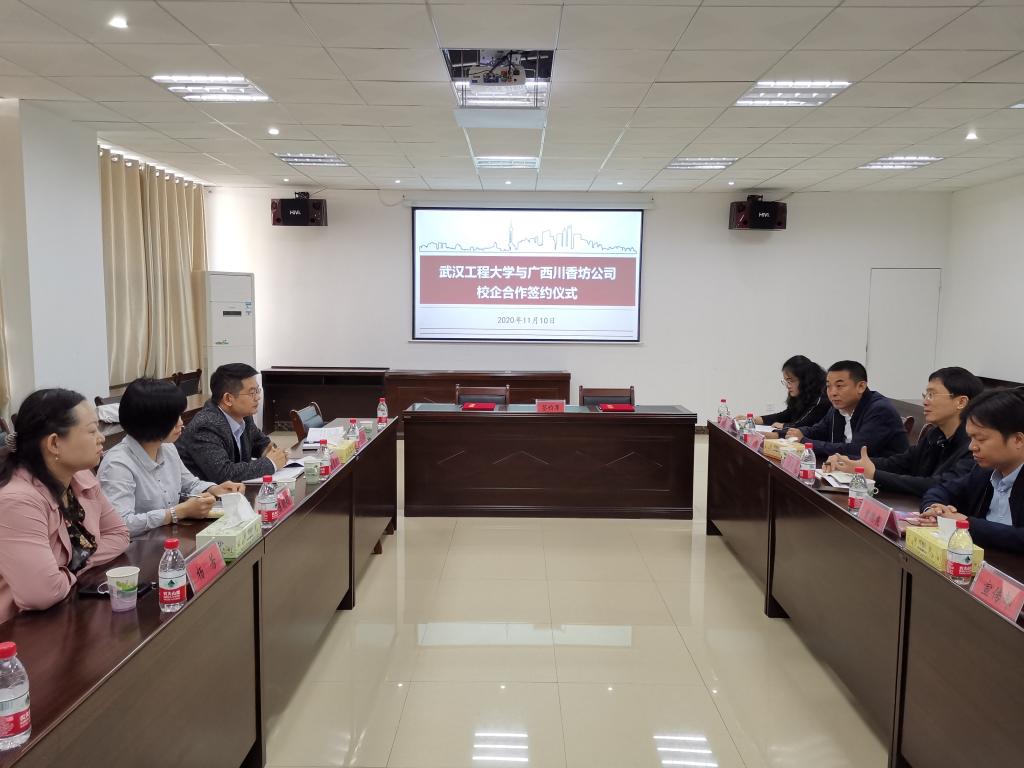 在高新区管委会相关领导的见证下,学院与广西川香坊食品有限公司签订产学研院企合作协议。企业负责人表示愿意与学院在就业实习、人才培养、科学研究、成果转化等方面开展深入合作。