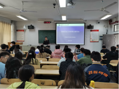 研究生辅导员邓炜带领全体研究生学习《武汉工程大学学生管理规定》、《武汉工程大学学生住宿管理规定》、《武汉工程大学研究生安全管理办法(试行)》等学校相关管理规定,重申学生宿舍日常管理要求,强化违规违纪教育和诚信教育。参会的每位学生现场签订了安全责任告知书。