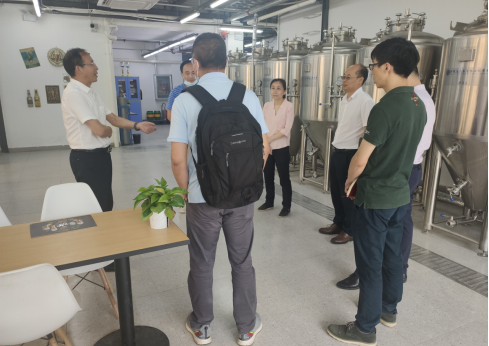 座谈会后,马小龙一行前往学院精酿实习与创业实训基地,围绕基地建设、团队运营等方面的困难进行研讨,为解决学院实验教学、工程实训、创新创业方面的实际问题出谋划策。