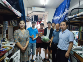 吕容涛一行前往学生宿舍看望并慰问了家庭困难学生,详细了解其家庭困难情况、学生个人及家人的病情,询问了学生在校期间学习、生活及考研等情况,并代表学校送上慰问金和消暑西瓜、饮品。他鼓励学生:一是要始终坚定信心,保持乐观心态,战胜生活中困难;二是要始终自立自强、矢志奋斗,利用暑期机会“充电加油”,实现梦想;三是要常怀感恩之心,用自身的励志成长故事感动和影响身边人。