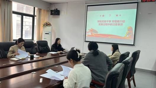 邓雪晴结合《中国共产党发展党员工作细则》从五个阶段二十五个步骤对发展党员工作流程、党员管理及党员材料归档等介绍发展过程中的注意事项,对出现的薄弱环节重点强调,要求各支部把好入口关,进一步规范程序、完善材料,发挥支部战斗堡垒作用,并针对2024年上半年学生党建工作重点进行布置。会上,与会党员结合前期党员发展过程中遇到的问题,对学院党员发展的文件提出了修订意见。大家热烈讨论,纷纷表示将按照党章规定的党员标准和入党程序,高质量做好发展党员工作。